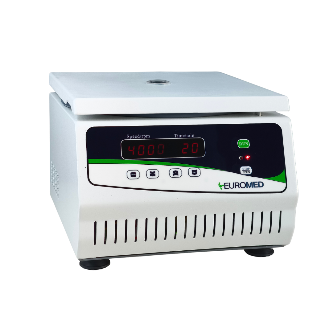 - La Centrífuga Digital EUROMED RG4-300G está diseñada para laboratorios que necesitan capacidad, precisión y confiabilidad en cada proceso. Con espacio para 24 tubos simultáneos, su sistema de control digital inteligente garantiza resultados consistentes y seguros, incluso en ciclos prolongados o de alta exigencia.